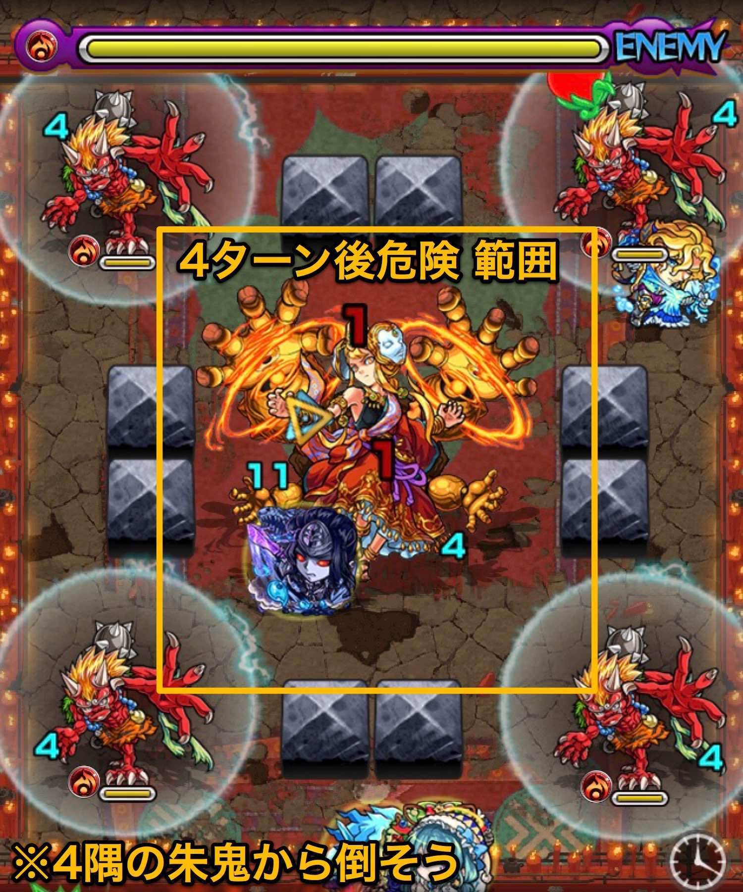 モンストのやんちゅ ヤマタケこの の場所でキャラ配置してそのキャラからの攻撃でステージ突破すると中ボス鬼マッチポイントに配置出来 決めれば1ターンで行けますw 分からない人は参考動画どぞ ヤマタケ T Co Rilgwkkh4b Http T Co Znyw2hi4lu Twitter